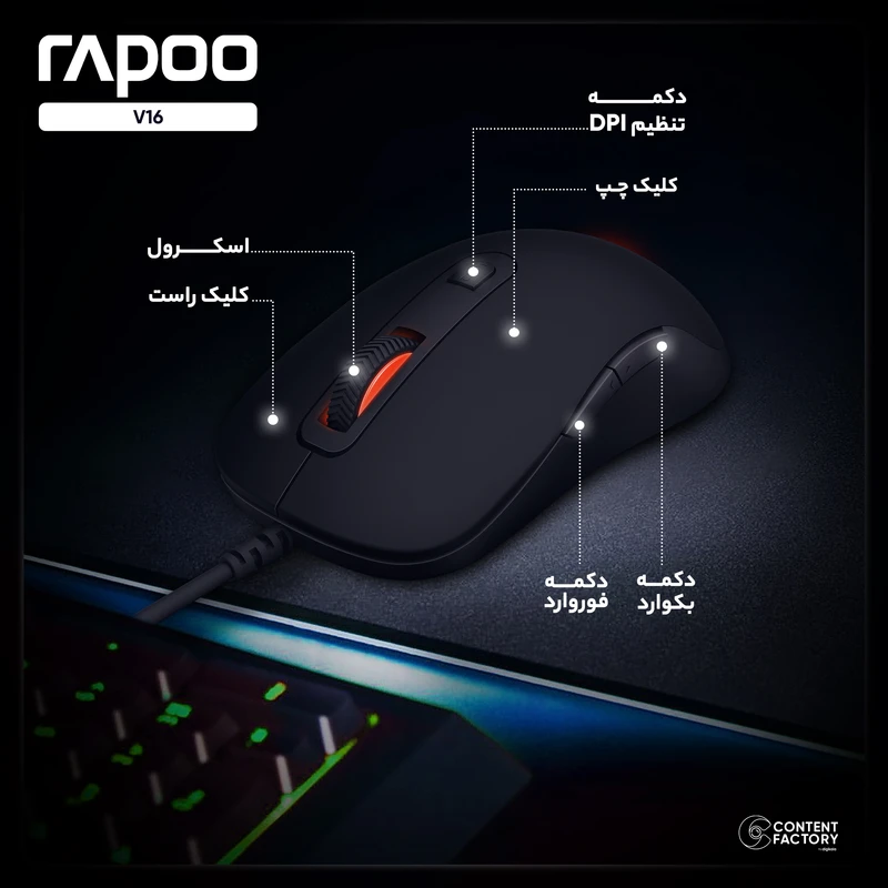 ماوس مخصوص بازی رپو مدل V16 یک گزینه اقتصادی و مناسب برای گیمرهاست که تمرکز روی دقت، راحتی و دوام دارد. این ماوس طراحی ارگونومیک متقارن دارد و برای دست راست و چپ مناسب است، بنابراین حتی در جلسات طولانی بازی، دست کمتر خسته میشود.